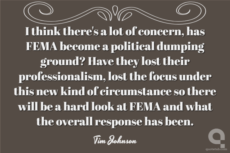 I think there's a lot of concern, has FEMA become a political dumping ground? Have they lost their professionalism, lost the focus under this new kind of circumstance so there will be a hard look at FEMA and what the overall response has been.