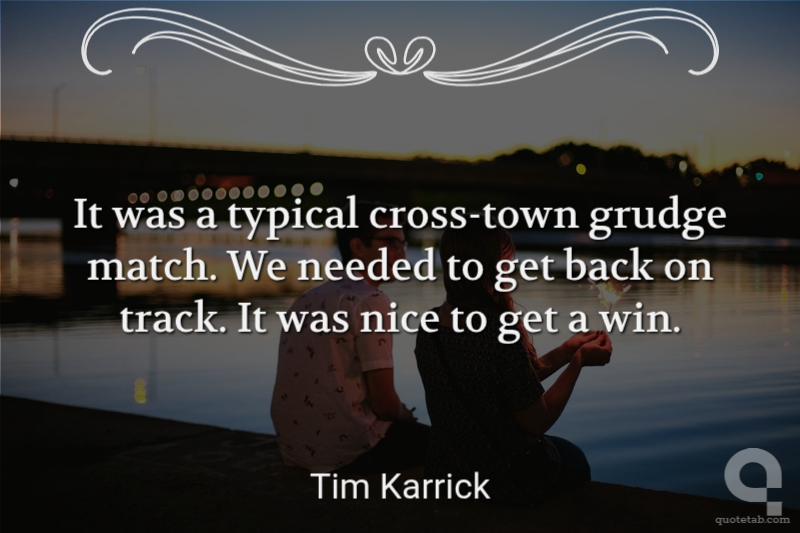 It was a typical cross-town grudge match. We needed to get back on track. It was nice to get a win.
