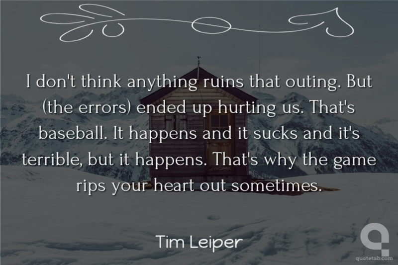 I don't think anything ruins that outing. But (the errors) ended up hurting us. That's baseball. It happens and it sucks and it's terrible, but it happens. That's why the game rips your heart out sometimes.
