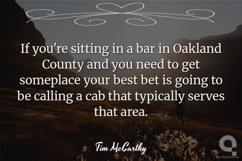 If you're sitting in a bar in Oakland County and you need to get someplace your best bet is going to be calling a cab that typically serves that area.