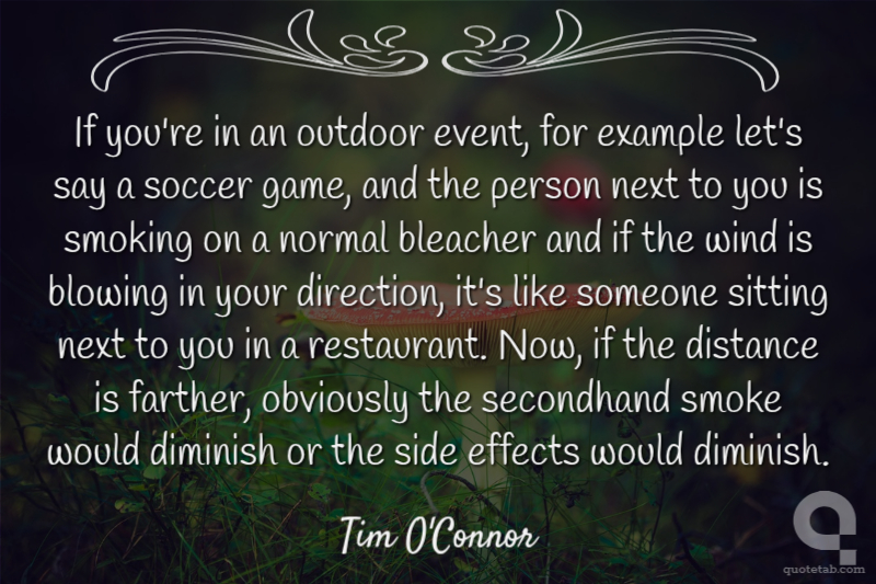 If you're in an outdoor event, for example let's say a soccer game, and the person next to you is smoking on a normal bleacher and if the wind is blowing in your direction, it's like someone sitting next to you in a restaurant. Now, if the distance is farther, obviously the secondhand smoke would diminish or the side effects would diminish.