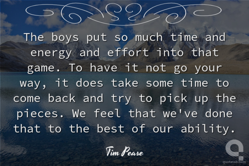 The boys put so much time and energy and effort into that game. To have it not go your way, it does take some time to come back and try to pick up the pieces. We feel that we've done that to the best of our ability.