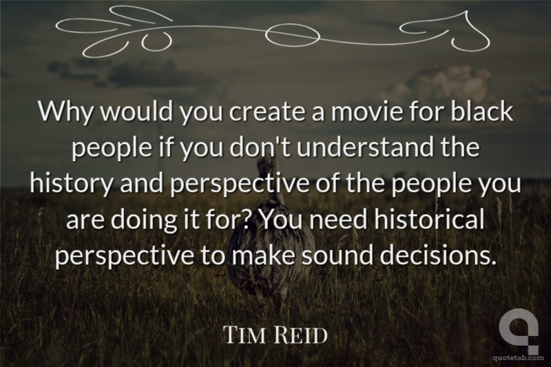 Why would you create a movie for black people if you don't understand the history and perspective of the people you are doing it for? You need historical perspective to make sound decisions.