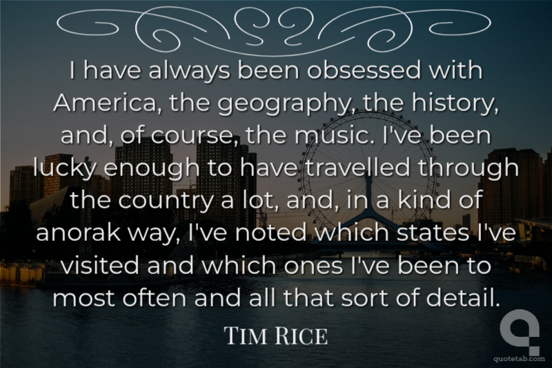 I have always been obsessed with America, the geography, the history, and, of course, the music. I've been lucky enough to have travelled through the country a lot, and, in a kind of anorak way, I've noted which states I've visited and which ones I've been to most often and all that sort of detail.