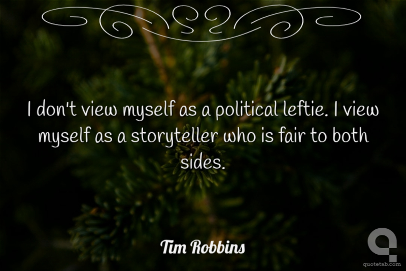 I don't view myself as a political leftie. I view myself as a storyteller who is fair to both sides.