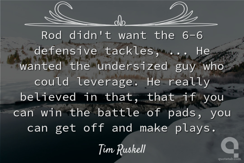 Rod didn't want the 6-6 defensive tackles, ... He wanted the undersized guy who could leverage. He really believed in that, that if you can win the battle of pads, you can get off and make plays.