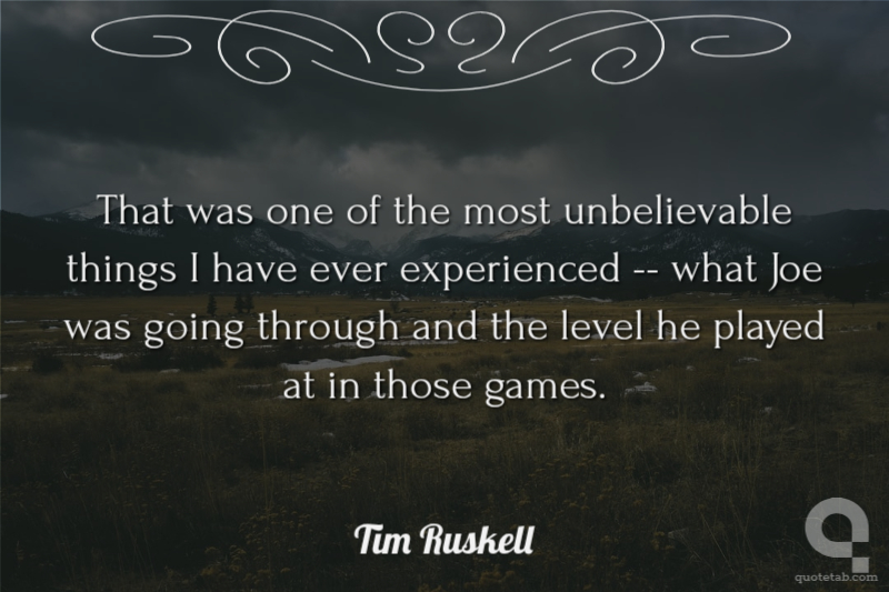 That was one of the most unbelievable things I have ever experienced -- what Joe was going through and the level he played at in those games.