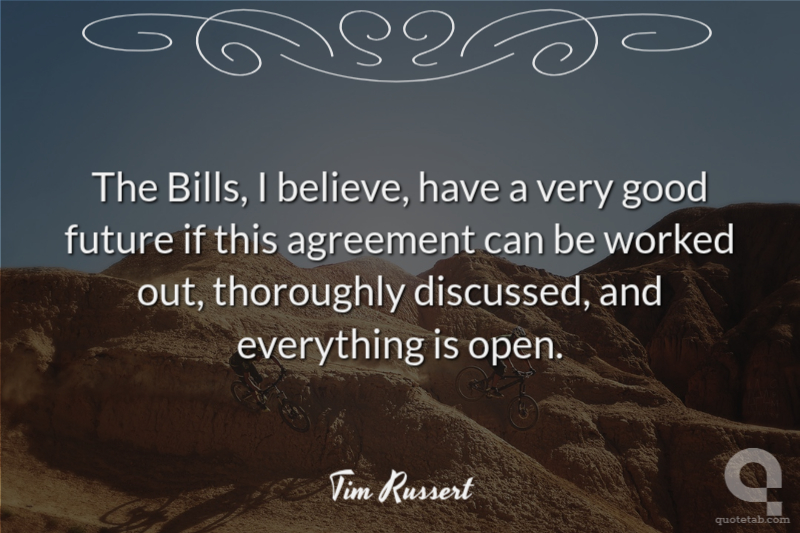The Bills, I believe, have a very good future if this agreement can be worked out, thoroughly discussed, and everything is open.