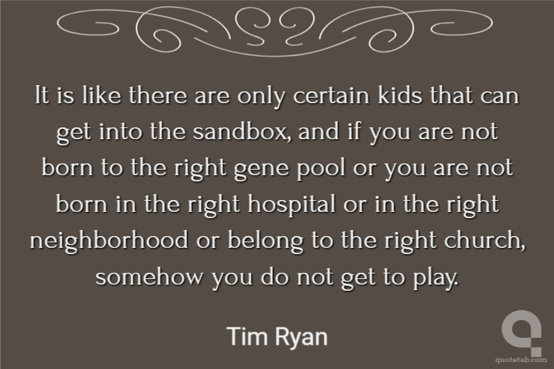 It is like there are only certain kids that can get into the sandbox, and if you are not born to the right gene pool or you are not born in the right hospital or in the right neighborhood or belong to the right church, somehow you do not get to play.