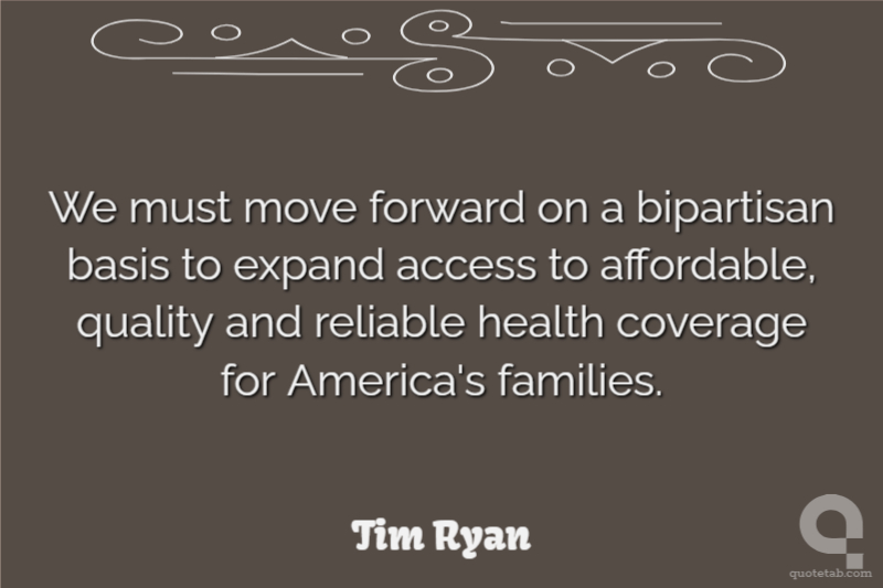 We must move forward on a bipartisan basis to expand access to affordable, quality and reliable health coverage for America's families.