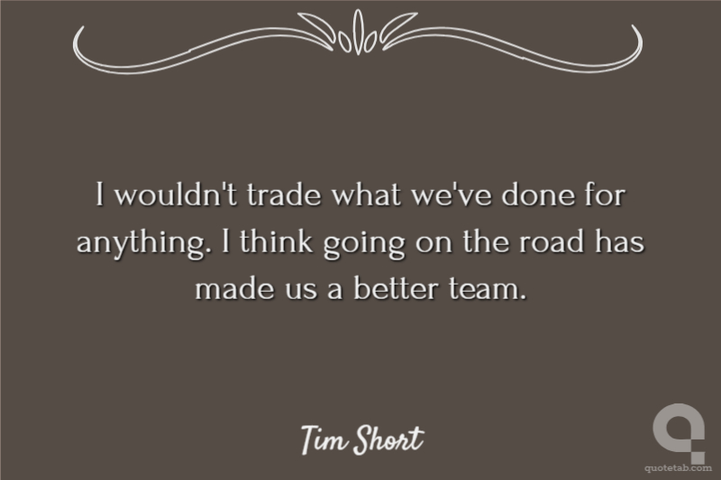 I wouldn't trade what we've done for anything. I think going on the road has made us a better team.