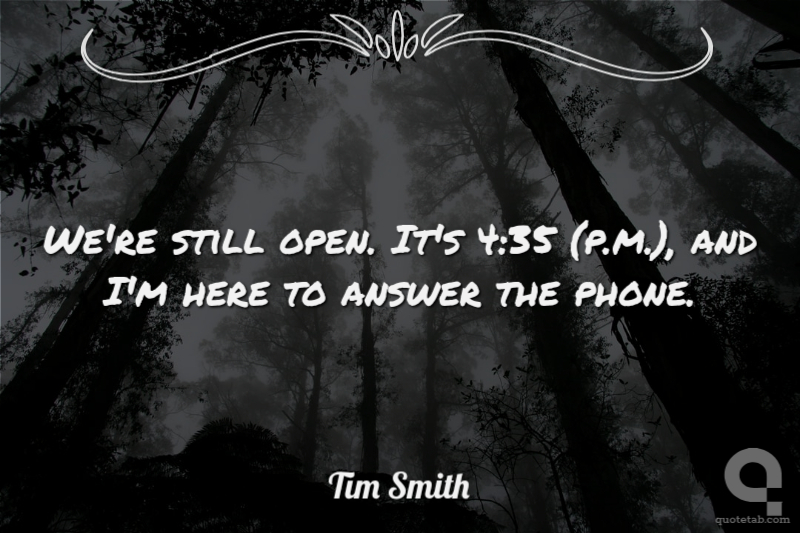 We're still open. It's 4:35 (p.m.), and I'm here to answer the phone.