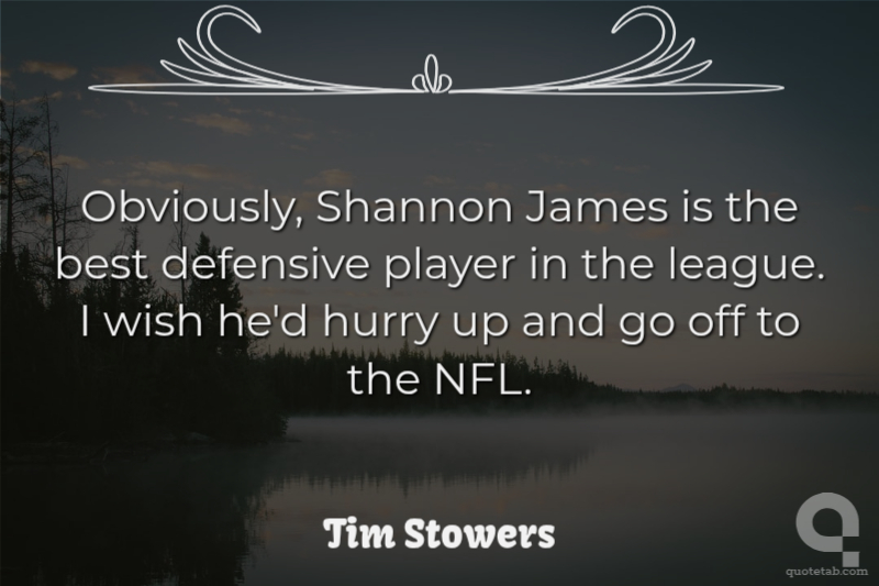 Obviously, Shannon James is the best defensive player in the league. I wish he'd hurry up and go off to the NFL.