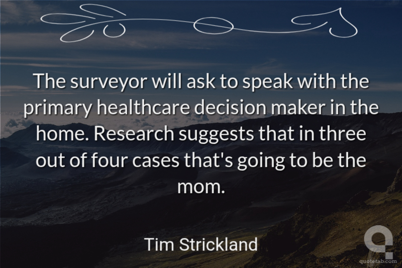 The surveyor will ask to speak with the primary healthcare decision maker in the home. Research suggests that in three out of four cases that's going to be the mom.
