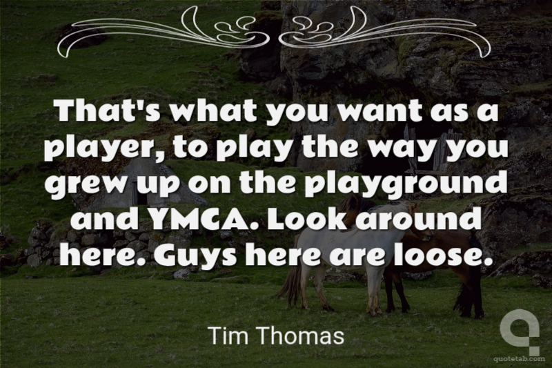 That's what you want as a player, to play the way you grew up on the playground and YMCA. Look around here. Guys here are loose.