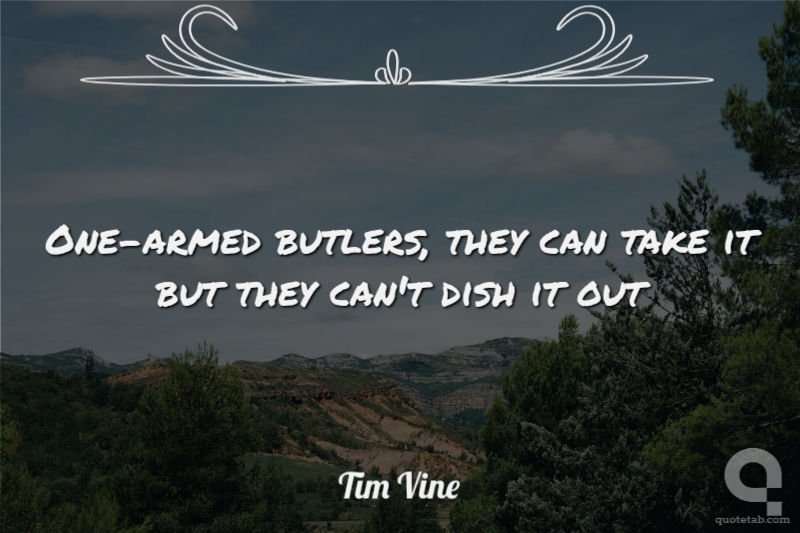 Timothy Mark "Tim" Vineis an English writer, actor, comedian and presenter, known for his quick-fire puns and his role on the BBC series Not Going Out until his departure in 2012. He has released a number of DVDs of his stand-up comedy and has written several joke books. In 2010 and 2014, Vine won the award for best joke at the Edinburgh Fringe Festival. His winning jokes were: "I've just been on a once-in-a-lifetime holiday. I'll tell you what, never...