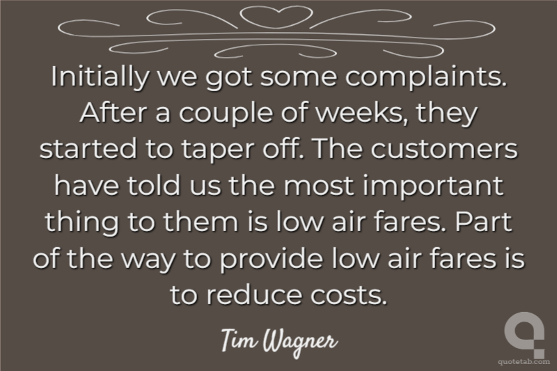 Initially we got some complaints. After a couple of weeks, they started to taper off. The customers have told us the most important thing to them is low air fares. Part of the way to provide low air fares is to reduce costs.