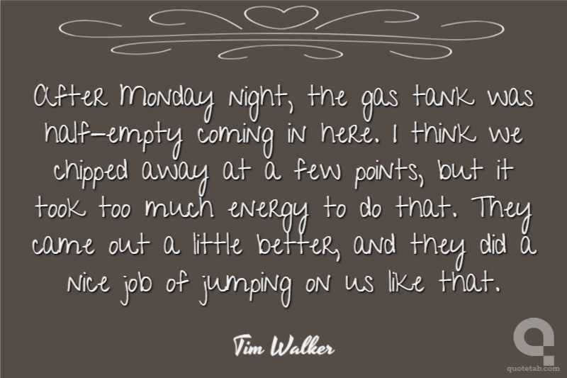 After Monday night, the gas tank was half-empty coming in here. I think we chipped away at a few points, but it took too much energy to do that. They came out a little better, and they did a nice job of jumping on us like that.