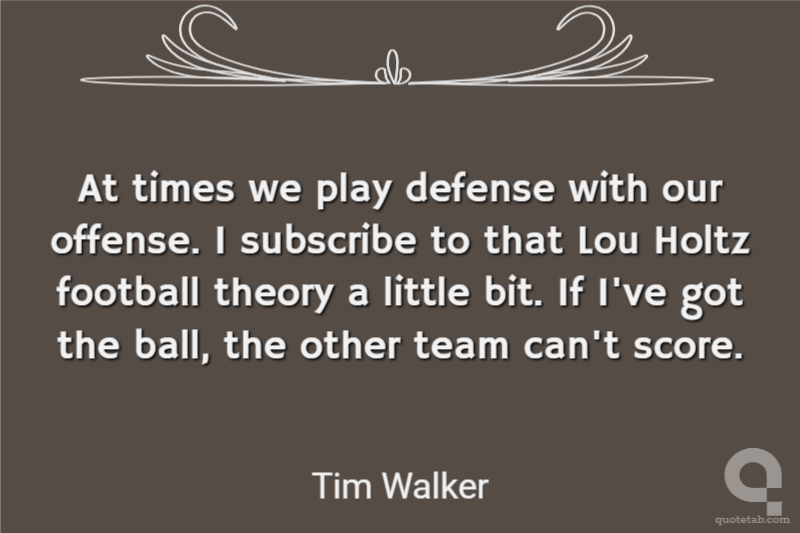 At times we play defense with our offense. I subscribe to that Lou Holtz football theory a little bit. If I've got the ball, the other team can't score.