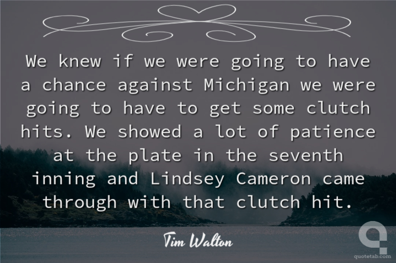 We knew if we were going to have a chance against Michigan we were going to have to get some clutch hits. We showed a lot of patience at the plate in the seventh inning and Lindsey Cameron came through with that clutch hit.