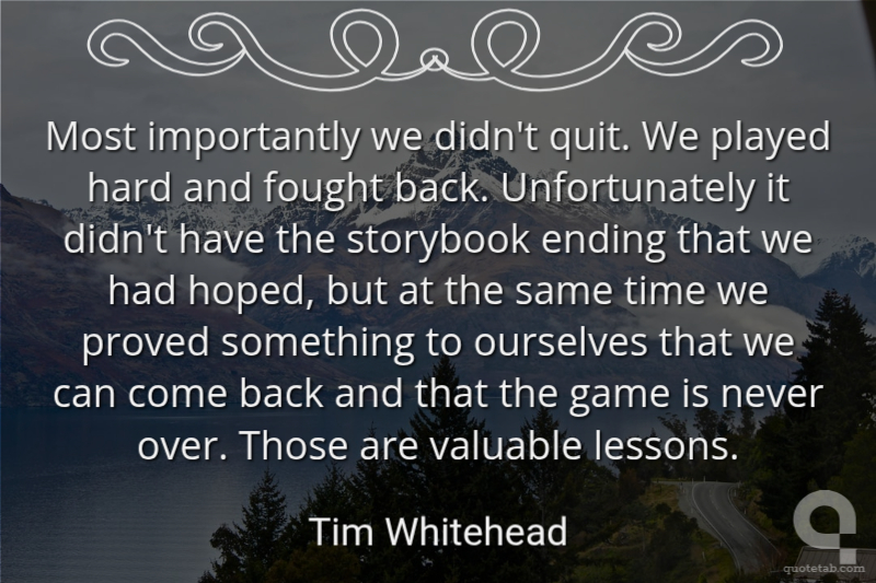 Most importantly we didn't quit. We played hard and fought back. Unfortunately it didn't have the storybook ending that we had hoped, but at the same time we proved something to ourselves that we can come back and that the game is never over. Those are valuable lessons.