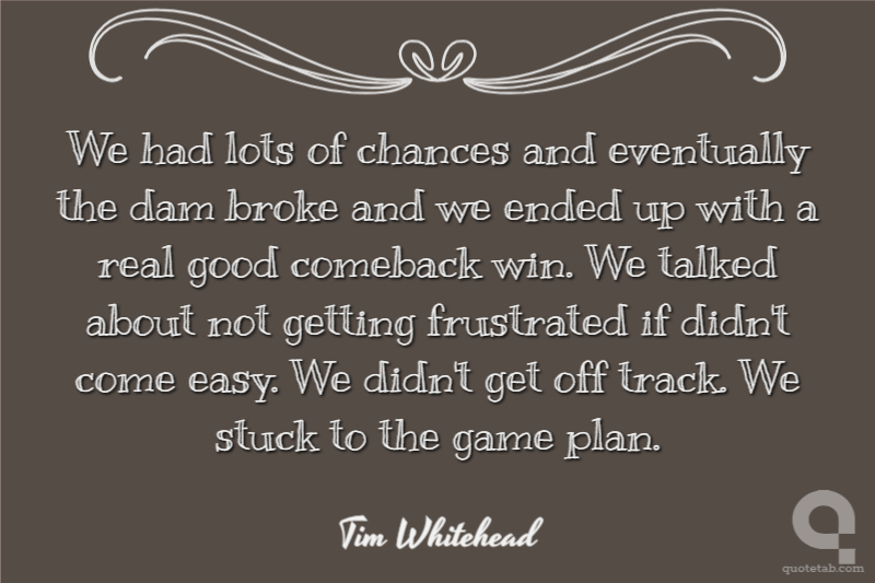 We had lots of chances and eventually the dam broke and we ended up with a real good comeback win. We talked about not getting frustrated if didn't come easy. We didn't get off track. We stuck to the game plan.