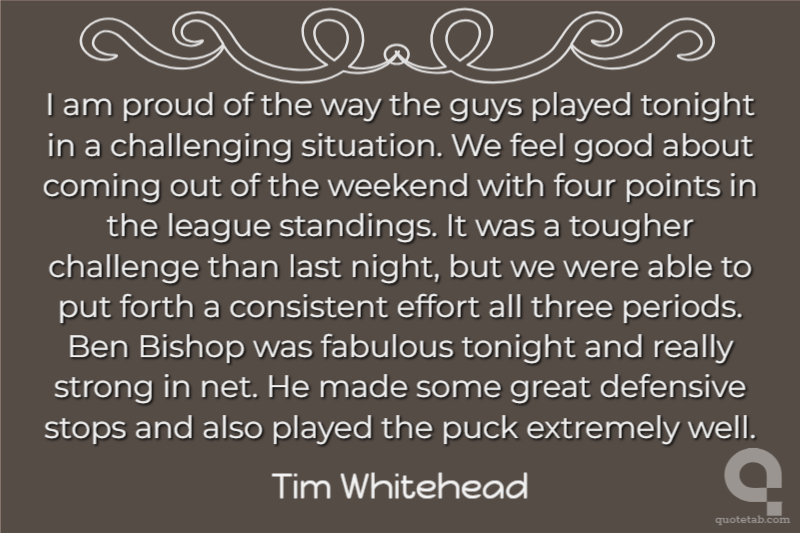 ben bishop challenge coming consistent defensive effort extremely fabulous forth four good great guys last league played points proud puck stops strong three tonight tougher weekend