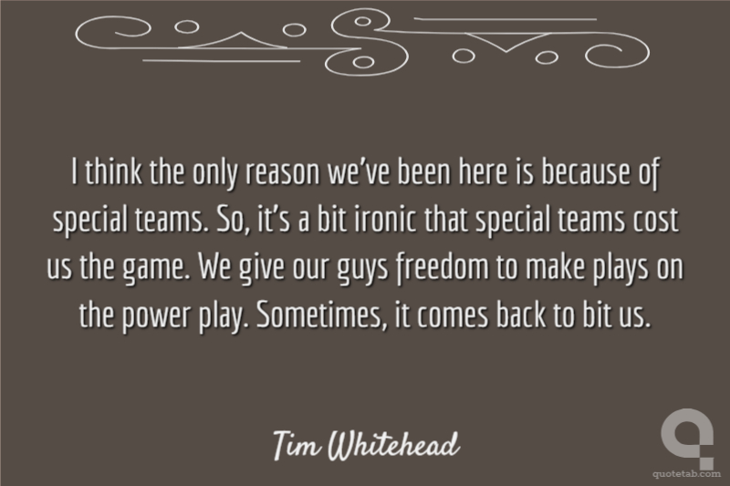I think the only reason we've been here is because of special teams. So, it's a bit ironic that special teams cost us the game. We give our guys freedom to make plays on the power play. Sometimes, it comes back to bit us.
