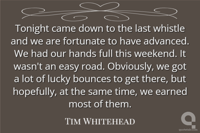 Tonight came down to the last whistle and we are fortunate to have advanced. We had our hands full this weekend. It wasn't an easy road. Obviously, we got a lot of lucky bounces to get there, but hopefully, at the same time, we earned most of them.