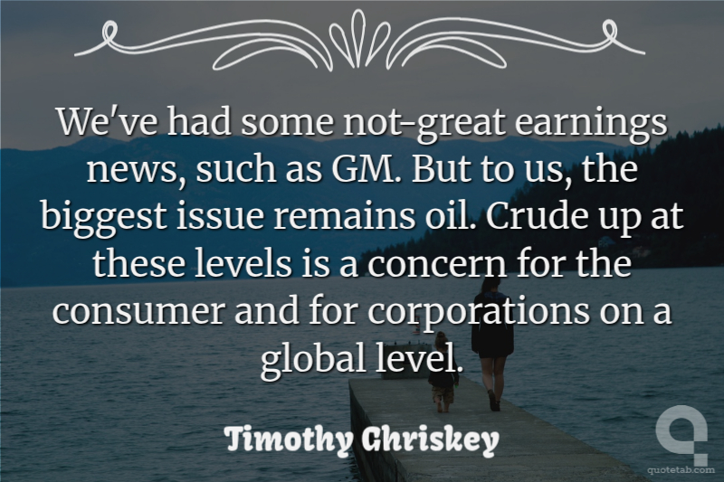 We've had some not-great earnings news, such as GM. But to us, the biggest issue remains oil. Crude up at these levels is a concern for the consumer and for corporations on a global level.