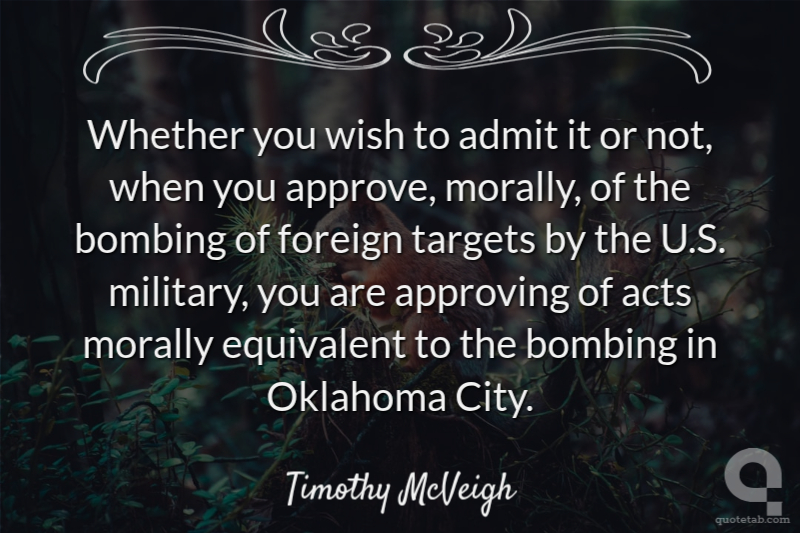 Whether you wish to admit it or not, when you approve, morally, of the bombing of foreign targets by the U.S. military, you are approving of acts morally equivalent to the bombing in Oklahoma City.