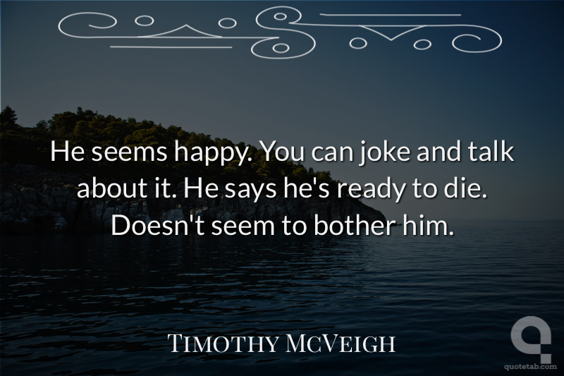 He seems happy. You can joke and talk about it. He says he's ready to die. Doesn't seem to bother him.