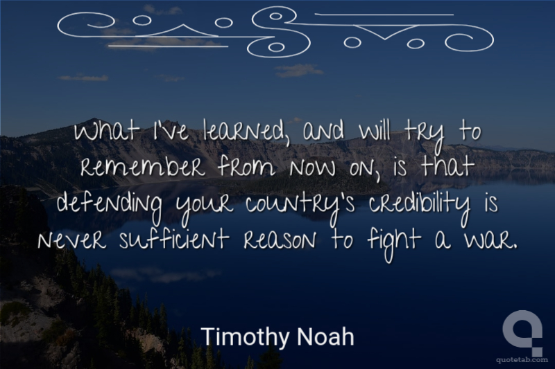 What I've learned, and will try to remember from now on, is that defending your country's credibility is never sufficient reason to fight a war.