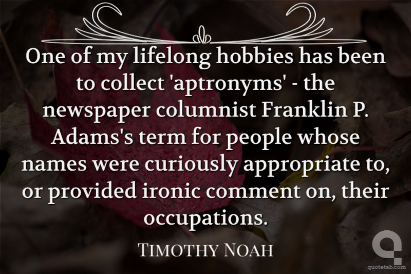 One of my lifelong hobbies has been to collect 'aptronyms' - the newspaper columnist Franklin P. Adams's term for people whose names were curiously appropriate to, or provided ironic comment on, their occupations.