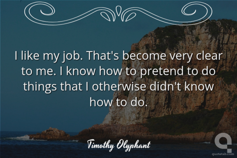 I like my job. That's become very clear to me. I know how to pretend to do things that I otherwise didn't know how to do.