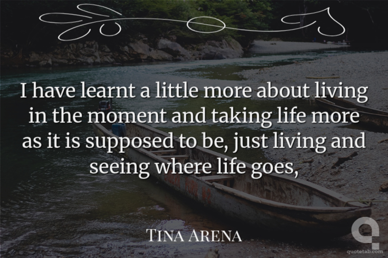 I have learnt a little more about living in the moment and taking life more as it is supposed to be, just living and seeing where life goes,