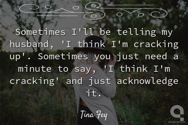 Sometimes I'll be telling my husband, 'I think I'm cracking up'. Sometimes you just need a minute to say, 'I think I'm cracking' and just acknowledge it.