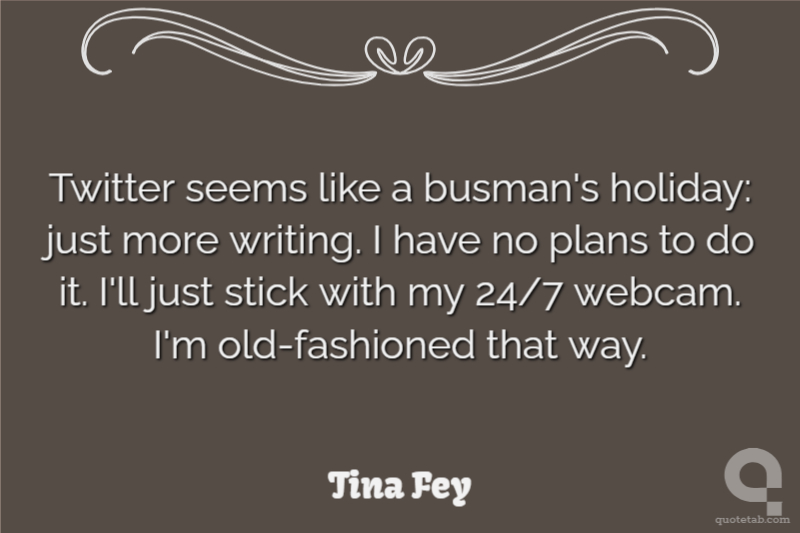 Twitter seems like a busman's holiday: just more writing. I have no plans to do it. I'll just stick with my 24/7 webcam. I'm old-fashioned that way.