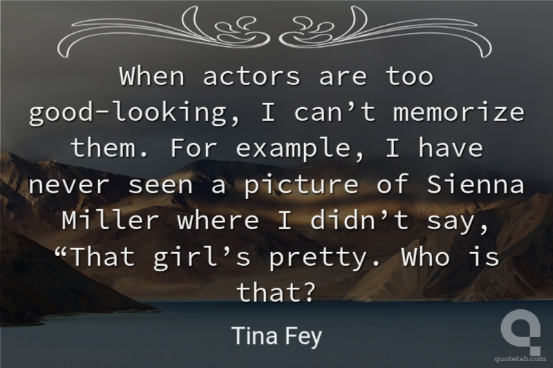 When actors are too good-looking, I can’t memorize them. For example, I have never seen a picture of Sienna Miller where I didn’t say, “That girl’s pretty. Who is that?