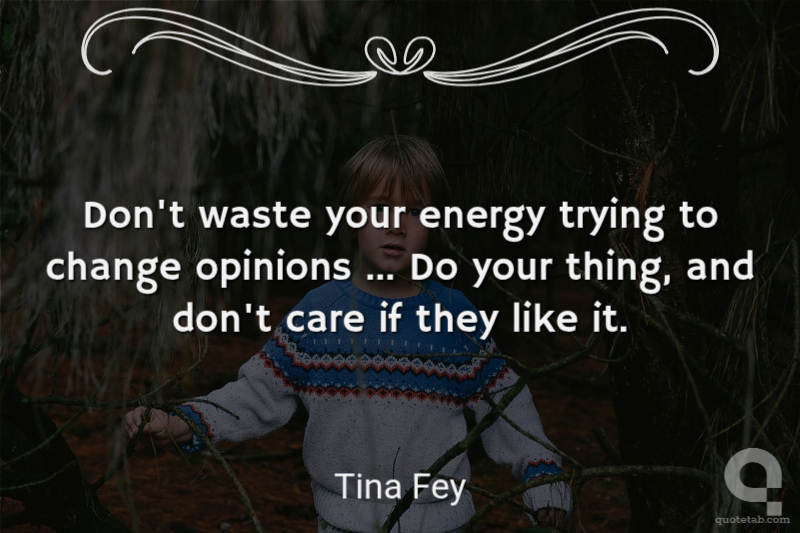 Don’t waste your energy trying to educate or change opinions; go over, under, through, and opinions will change organically when you’re the boss. Or they won’t. Who cares? Do your thing, and don’t care if they like it.