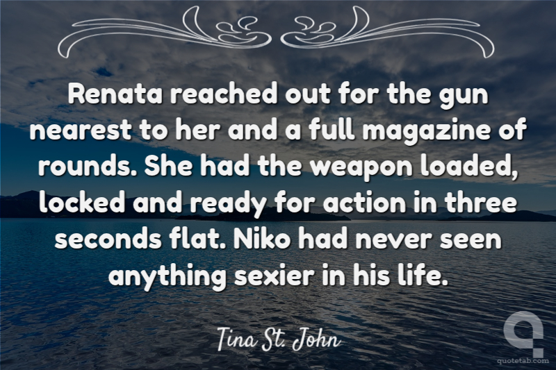 Renata reached out for the gun nearest to her and a full magazine of rounds. She had the weapon loaded, locked and ready for action in three seconds flat. Niko had never seen anything sexier in his life.