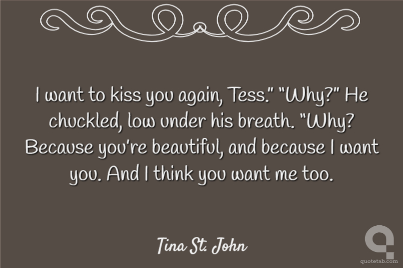 I want to kiss you again, Tess.” “Why?” He chuckled, low under his breath. “Why? Because you’re beautiful, and because I want you. And I think you want me too.