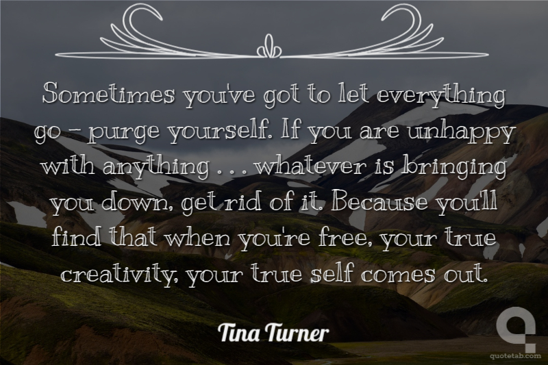 Sometimes you've got to let everything go - purge yourself. If you are unhappy with anything . . . whatever is bringing you down, get rid of it. Because you'll find that when you're free, your true creativity, your true self comes out.