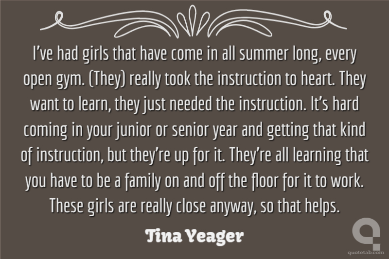 I've had girls that have come in all summer long, every open gym. (They) really took the instruction to heart. They want to learn, they just needed the instruction. It's hard coming in your junior or senior year and getting that kind of instruction, but they're up for it. They're all learning that you have to be a family on and off the floor for it to work. These girls are really close anyway, so that helps.
