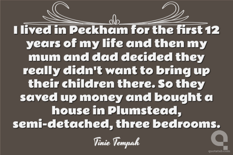 I lived in Peckham for the first 12 years of my life and then my mum and dad decided they really didn't want to bring up their children there. So they saved up money and bought a house in Plumstead, semi-detached, three bedrooms.