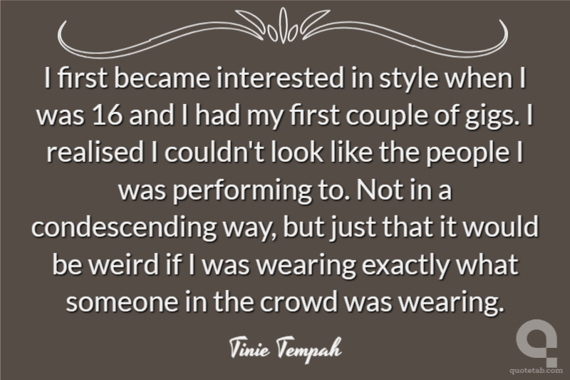 I first became interested in style when I was 16 and I had my first couple of gigs. I realised I couldn't look like the people I was performing to. Not in a condescending way, but just that it would be weird if I was wearing exactly what someone in the crowd was wearing.