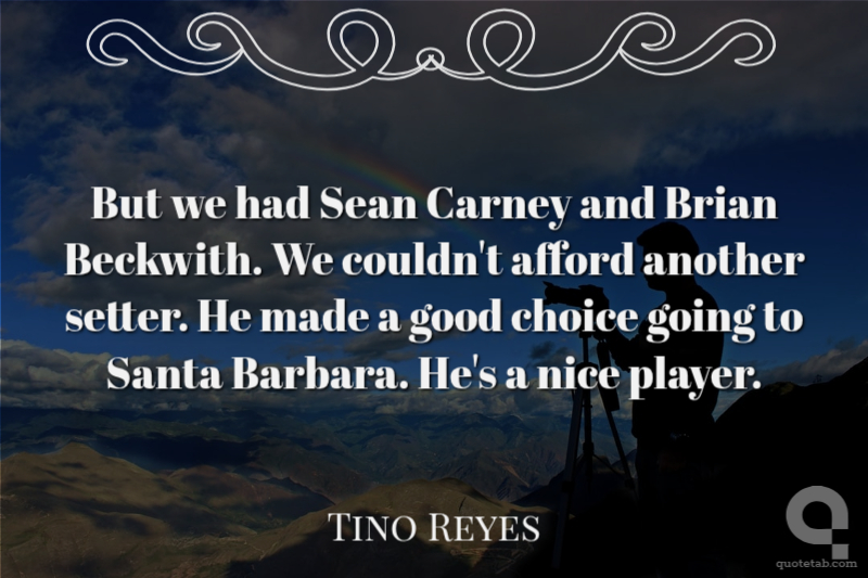 But we had Sean Carney and Brian Beckwith. We couldn't afford another setter. He made a good choice going to Santa Barbara. He's a nice player.
