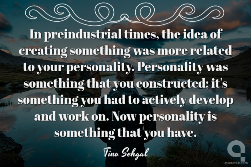 In preindustrial times, the idea of creating something was more related to your personality. Personality was something that you constructed; it's something you had to actively develop and work on. Now personality is something that you have.
