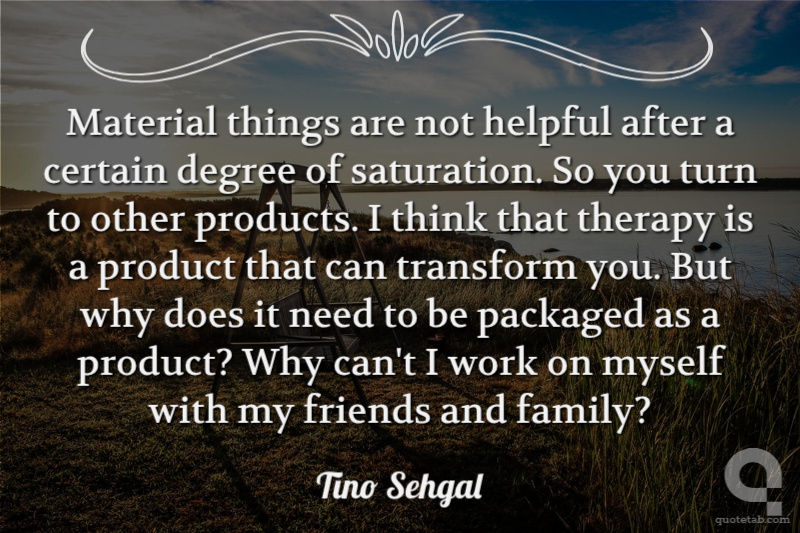 Material things are not helpful after a certain degree of saturation. So you turn to other products. I think that therapy is a product that can transform you. But why does it need to be packaged as a product? Why can't I work on myself with my friends and family?