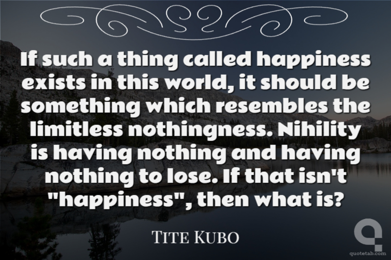 If such a thing called happiness exists in this world, it should be something which resembles the limitless nothingness. Nihility is having nothing and having nothing to lose. If that isn't "happiness", then what is?